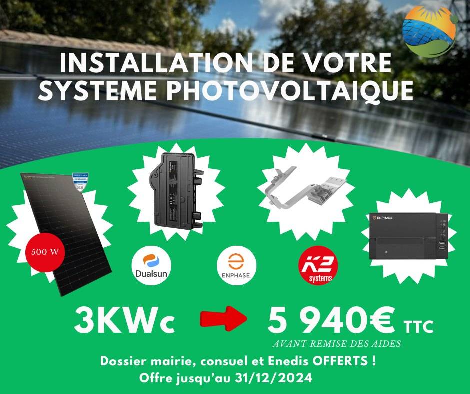 5940€ TTC pour l'installation de 3Kwc